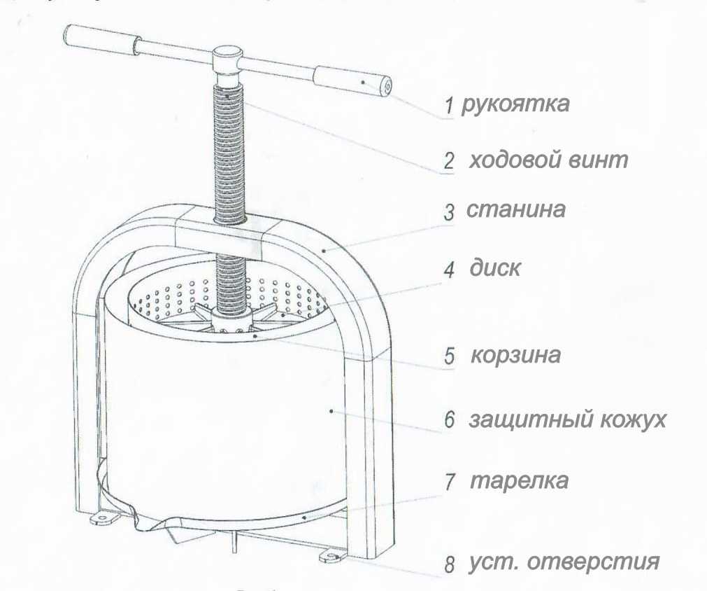 Емкость и корзина изготовлены из нержавеющей стали, прижимной диск из пищевого алюминия (толщина диска 5мм, имеются также дополнительные ребра жесткости для усиления диска). Специальная метрическая резьба винта придает уверенности пользователю и является сверхнадежным механизмом.